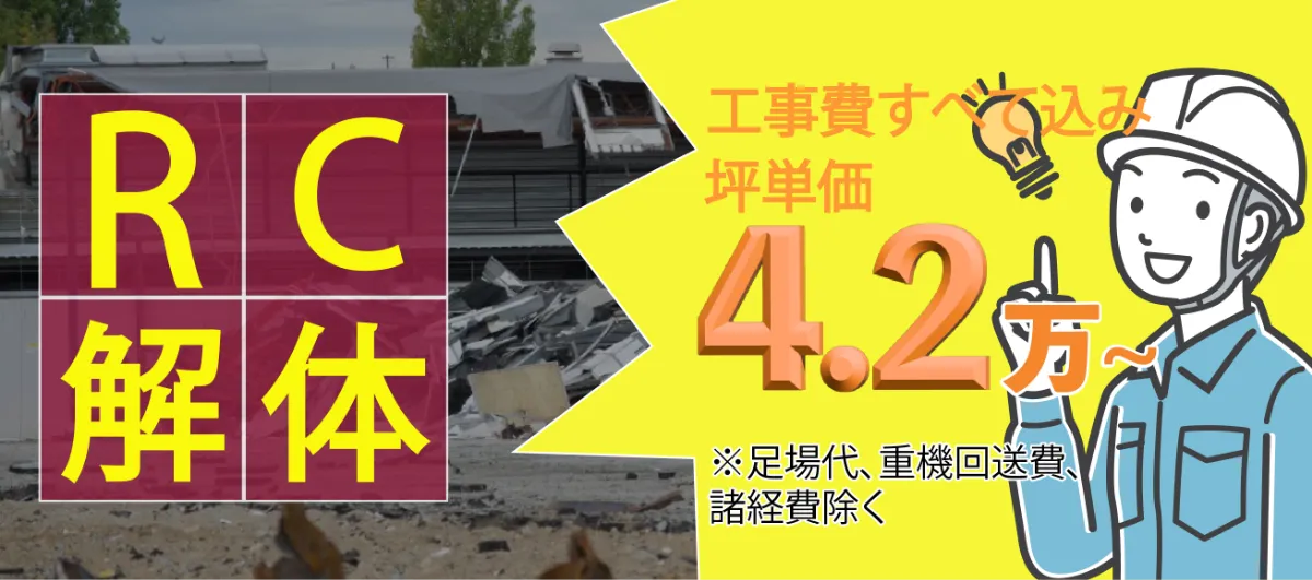 鉄筋コンクリート(RC)造建物専用の解体プランです。 RC造は構造が頑丈で解体に時間と費用がかかるため、重機・工具・専門技術者による段階的な解体を行います。 コンクリート片や鉄筋の分別、適切な廃棄処理を徹底し、周辺環境への影響を最小限に抑えます。