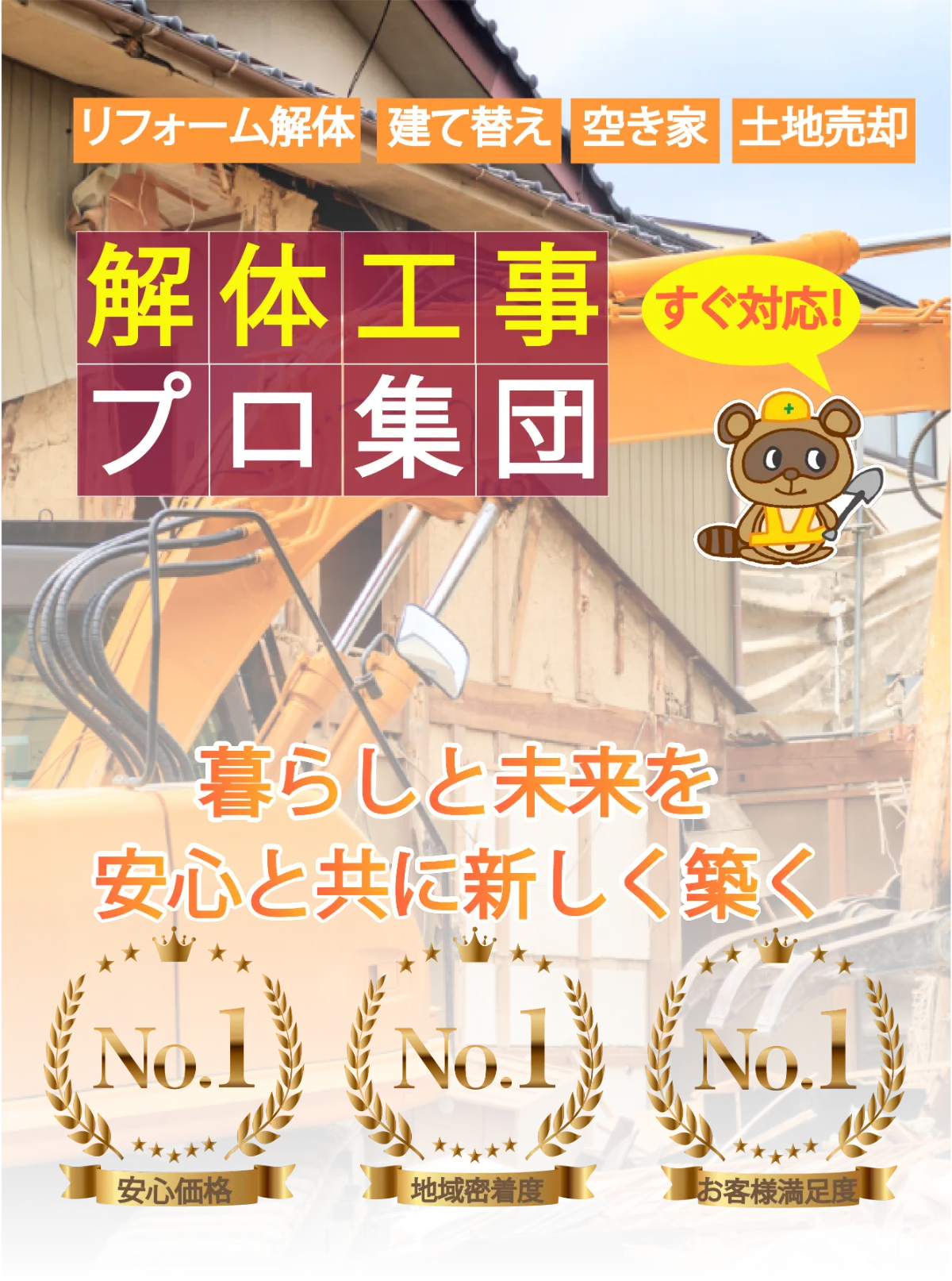 解体工事は新たな歩みを始めるための準備段階です。安心してお任せできる解体業者が希少な中、弊社スタッフが一つひとつ丁寧に、お客様の解体工事に関するご不安やお悩みを解消いたします。