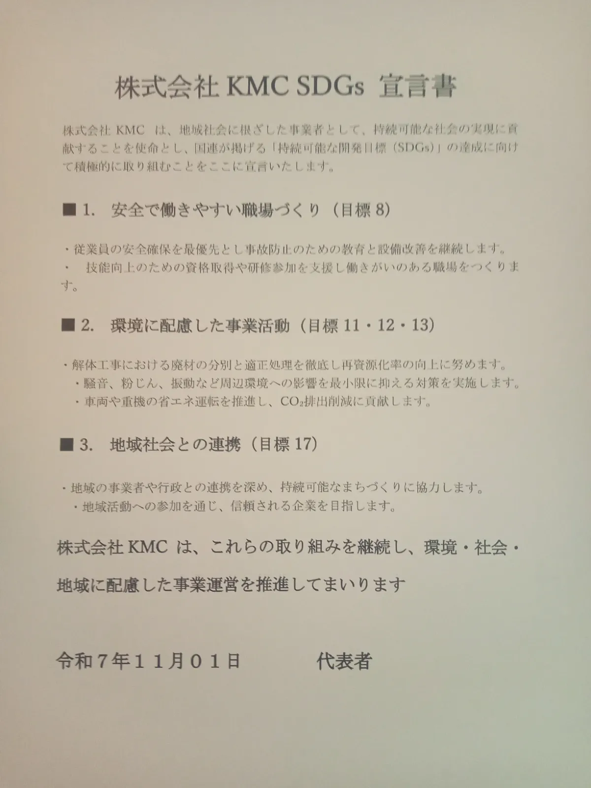 法令に基づき、木材・鉄・コンクリートなどを分別し、リサイクルや適正処分を行っています。